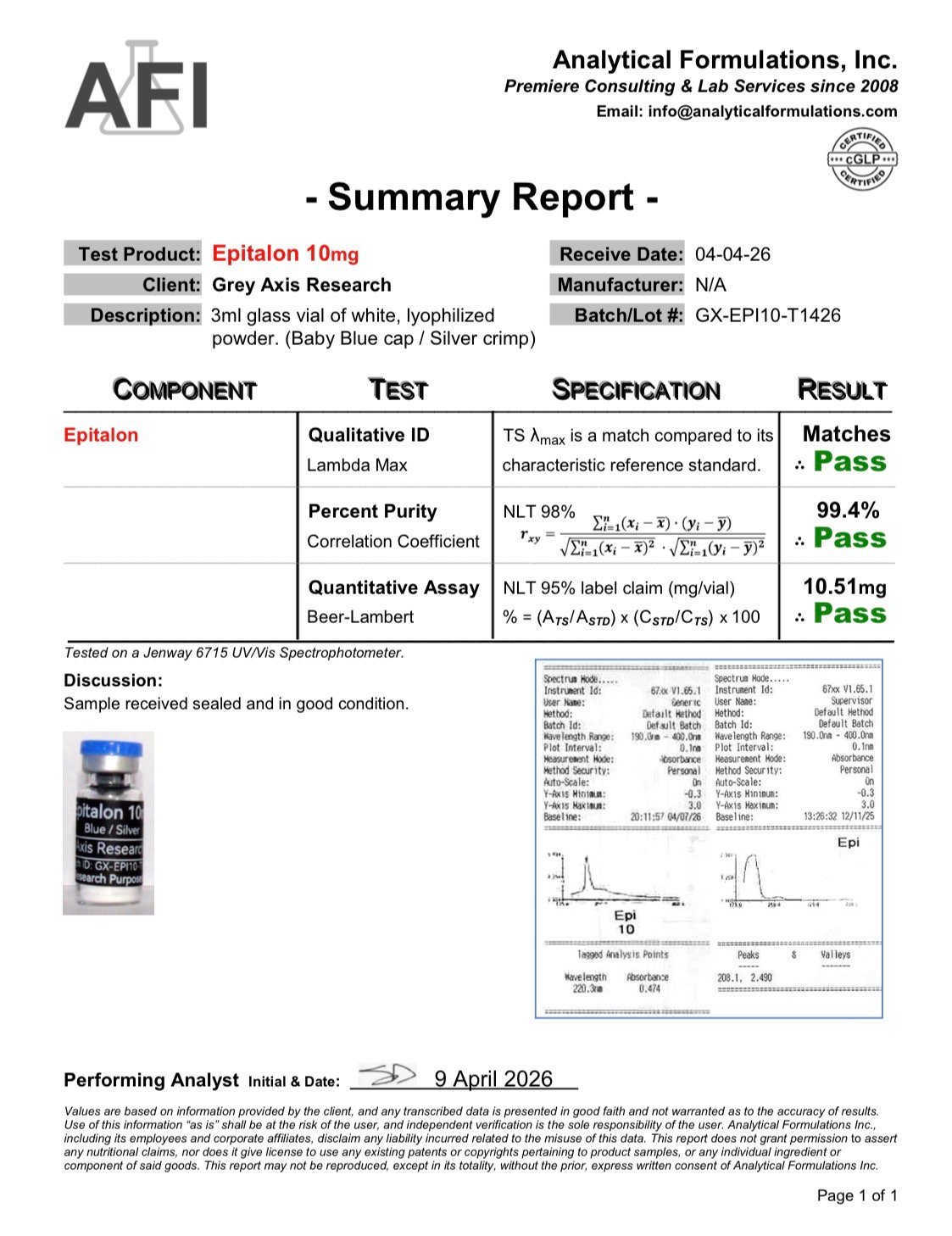 Epitalon 10 — Laboratory Research Material (Research Use Only)