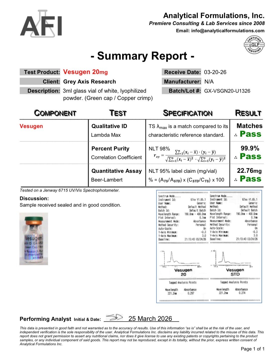 The Certificate of Analysis (COA), where available, constitutes the primary and controlling product description. Website summaries are informational and do not supersede the COA.
